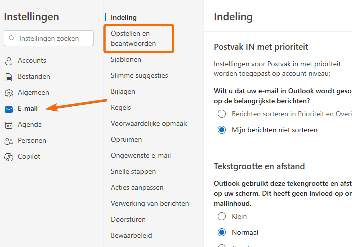 Hier klikt u op: "Email" en op "Opstellen en beantwoorden: